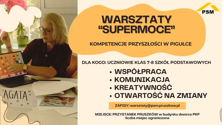 W Pruszkowie szykują się zajęcia, które mogą naprawdę pomóc nastolatkom lepiej ogarnąć siebie, swoje mocne strony i to, co czeka ich po ósmej klasie Warsztaty „Supermoce” to spokojna przestrzeń do rozmowy, ćwiczeń i odkrywania talentów, które przydadzą się nie tylko w szkole, ale też później. To dobry moment, żeby zgłosić dziecko, bo miejsc zostało już niewiele.