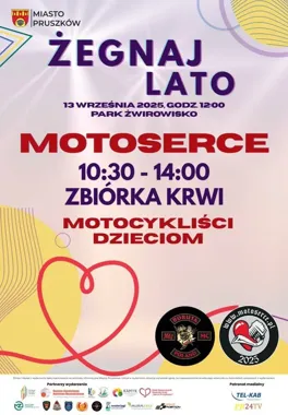 W Parku Żwirowisko w Pruszkowie odbędzie się kolejna edycja akcji Motoserce, połączona z miejskim wydarzeniem „Żegnaj Lato”. Organizatorzy zapraszają mieszkańców i miłośników jednośladów na wspólne spotkanie i jednoczesną zbiórkę krwi, która ma charakter otwarty — można przyjechać na motocyklu lub dotrzeć pieszo, rowerem czy hulajnogą.
